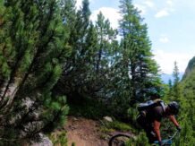 Nach dem Übergang beim Schartlehnerhaus ändert sich der Charakter des Trails deutlich. Der Boden wird griffiger, Waldboden dominiert das Bild – durchsetzt mit Fels- und Wurzelstufen, teils eng gesteckten Spitzkehren und einer natürlichen Linienführung, die Flow und Technik vereint. Die Schlüsselstelle ist eine S4/S5-Passage, die mit viel Fahrtechnik (oder kurzem Absteigen) zu meistern ist. Der Rest des Abschnitts bewegt sich größtenteils im Bereich S2+ mit vielen S3-Spitzkehren.
