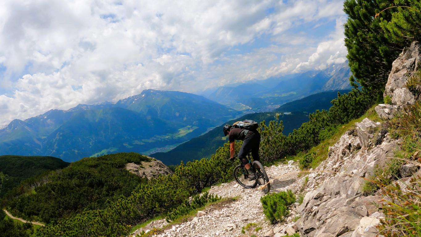 Direkt ab der Nördlingerhütte beginnt der Trail mit einem Paukenschlag: Grobsteiniger, felsiger Untergrund dominiert den Abstieg. Die Linienwahl ist oft fordernd, viele Passagen sind verblockt und verlangen sicheres Handling auf schwierigem Terrain. Der Schwierigkeitsgrad liegt über weite Strecken bei S3 – mit einigen besonders kniffligen Stellen, bei denen Technik, Mut und Konzentration gefragt sind.