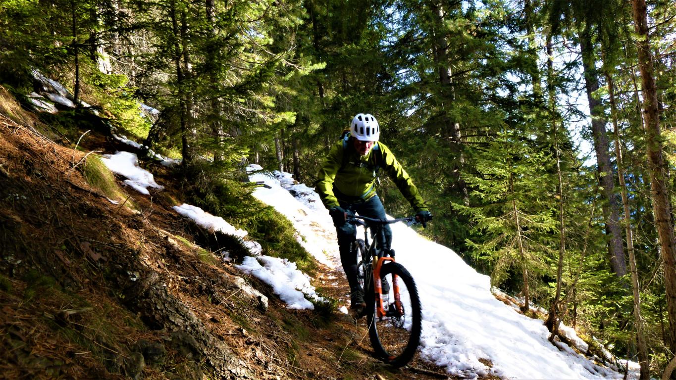 der Trail führt abwechselnd im Schwierigkeitsgrad S1 und S2/G2 mit ein paar S3/G2 Stellen geht’s flowig über den Ochsenbründltrail hinunter nach Wildermieming.