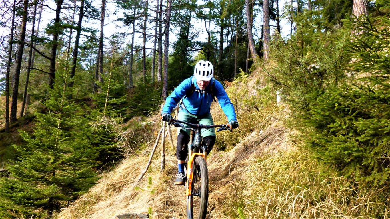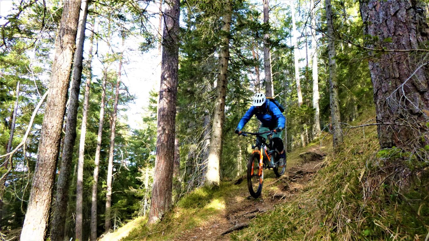 Der Trail führt durchgehend auf verfestigtem Waldboden mit mehreren Fels/Wurzelstufen und vielen Spitzkehren hinunter nach Reith. Der Schwierigkeitsgrad liegt Großteils bei S2 mit ein paar S3 Spitzkehren.