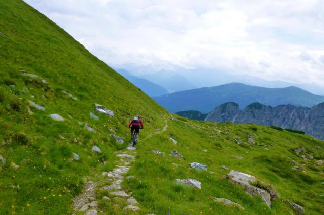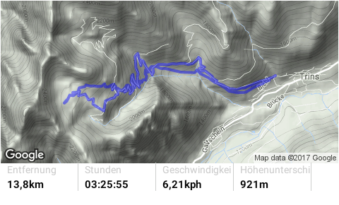 Von Trins über den Forstweg aufs Padasterjochhaus. Bergab über den Herrentrail bis zum Padasterbach ist der Singletrail durchwegs mit den Schwierigkeitsgrad S3 zu bewerten. Ab dem Bach mit der kleinen Holzbrücke wirds dann leichter, abwechselnd S1 und S2.