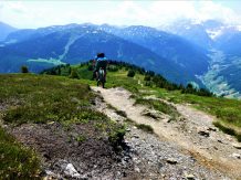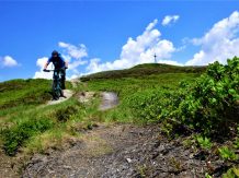 Abfahrt vom Gipfel zum größten Teil auf verfestigtem Untergrund im Schwierigkeitsgrad S2-/G1. Dann den 82er Trail über die Padauner Mähder mit ein paar Spitzkehren und Wurzelstufen im Schwierigkeitsgrad S2/G2 hinunter nach Gries.