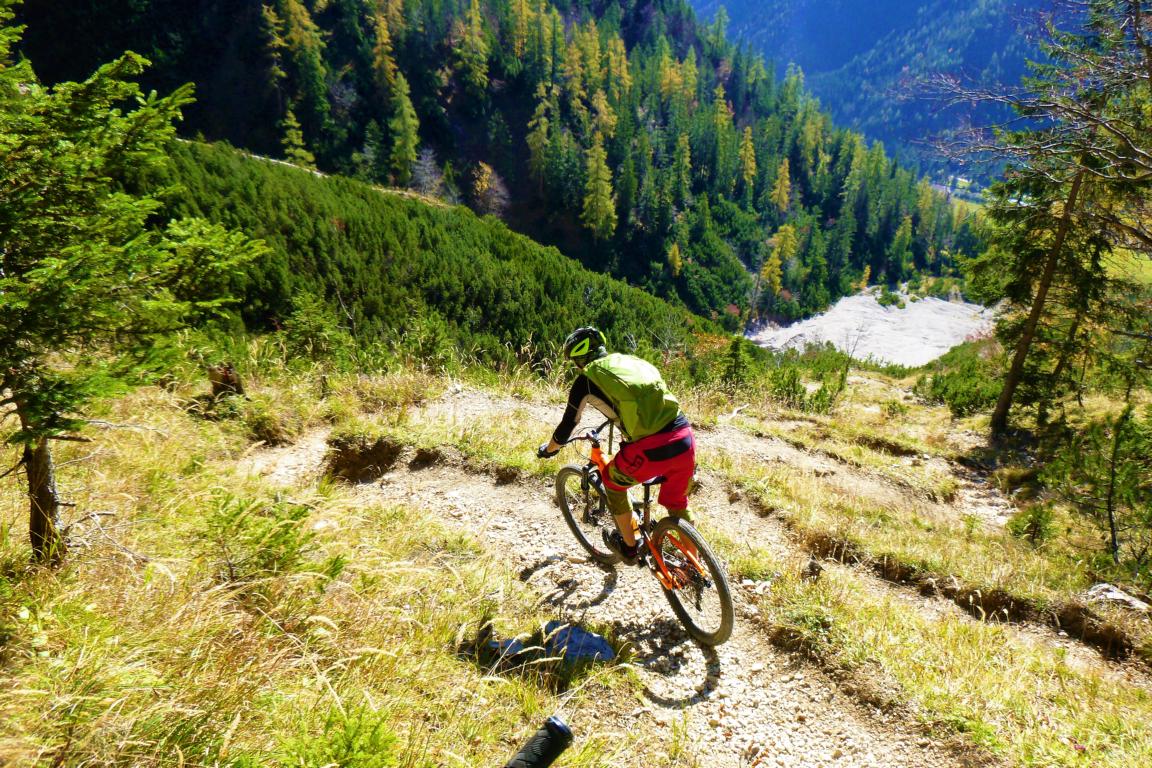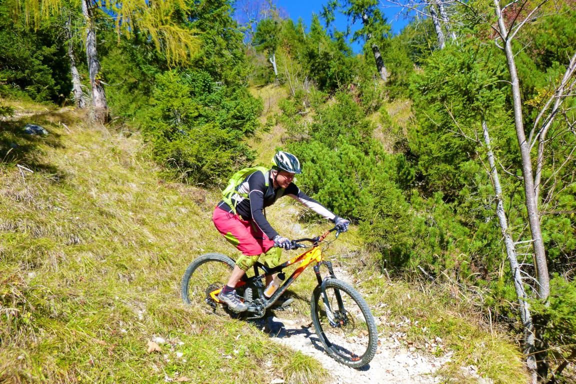 Von Buchau nach Achenkirch über die Seekaralm zur Pasillalm mit kurzer Tragestrecke bis zum Sattel. Trailabfahrt zur Pletzachalm mit vielen Spitzkehren im Schwierigkeitsgrad S2 mit S3 Passagen. Weiter gehts auf den schönen, super flowigen Seebergtrail-S1 nach Pertisau und zurück nach Buchau.