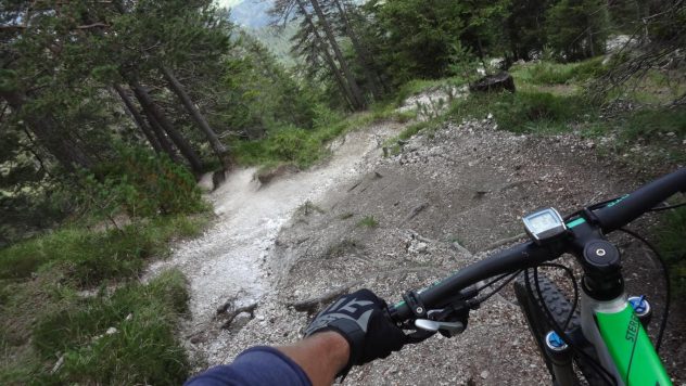 Der Trail startet direkt von der Alm der sich bis etwa 150 Hm unterhalb der Pfarrachalm nach der Freifläche namens “Kotzen” am Hirtensteig über feinsten Singletrail weiter fortsetzt. Der Trail ist nicht sonderlich schwierig – vorausgesetzt man beherrscht das Spitzkehren fahren. Besonders im Mittelteil ist die Beherrschung des Hinterradversetzens von Vorteil, aber nicht zwingend. Der Trail von der Alm bis hinunter nach Plöven liegt im Schwierigkeitsgrad S2.