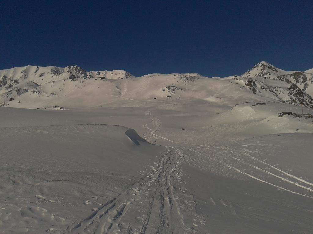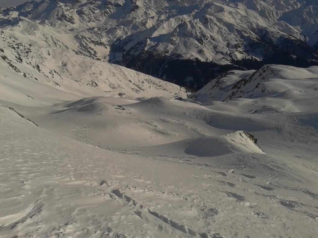 Die Schneeverhältnisse waren besser wie gedacht. Der Aufstieg war problemlos bis zum Gipfel. Abfahrt, bei 10 bis 15 cm Neuschnee und guten Untergrund, über die Almen war der pure Genuss. Weiter unten über die Forststraße bis zum Parkplatz gab es leichten Feindkontakt.