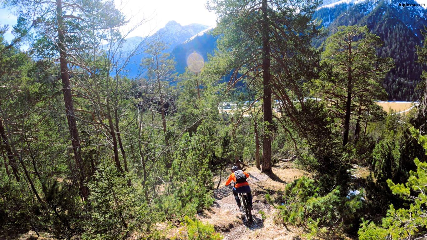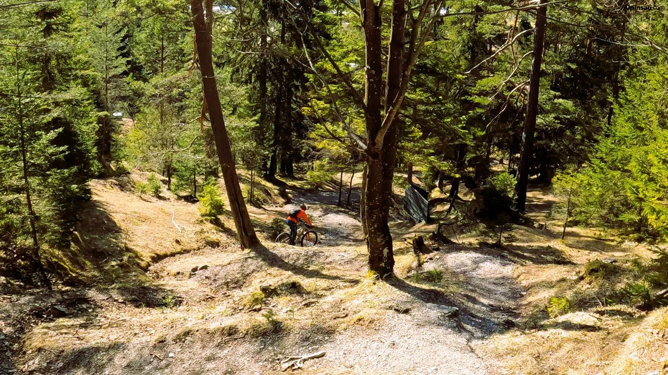 Vom Ende der Forststraße führt die Trailabfahrt mit ein paar Spitzkehren auf grobsteinigem Untergrund im Schwierigkeitsgrad S2 zur Pletzachalm. Weiter auf den schönen, super flowigen Seebergtrail im Schwierigkeitsgrad S1 nach Eben. Von dort über den 8B-Trail S2 weiter über die Forstmeile mit einigen Spitzkehren nach Wiesing zurück.