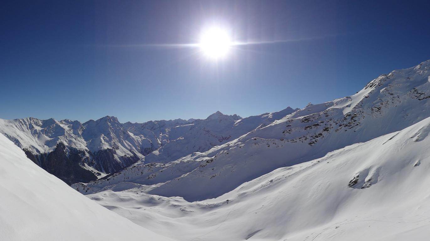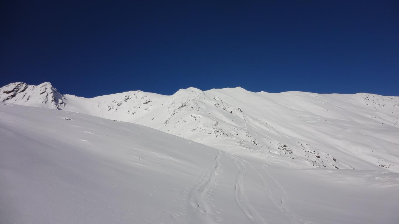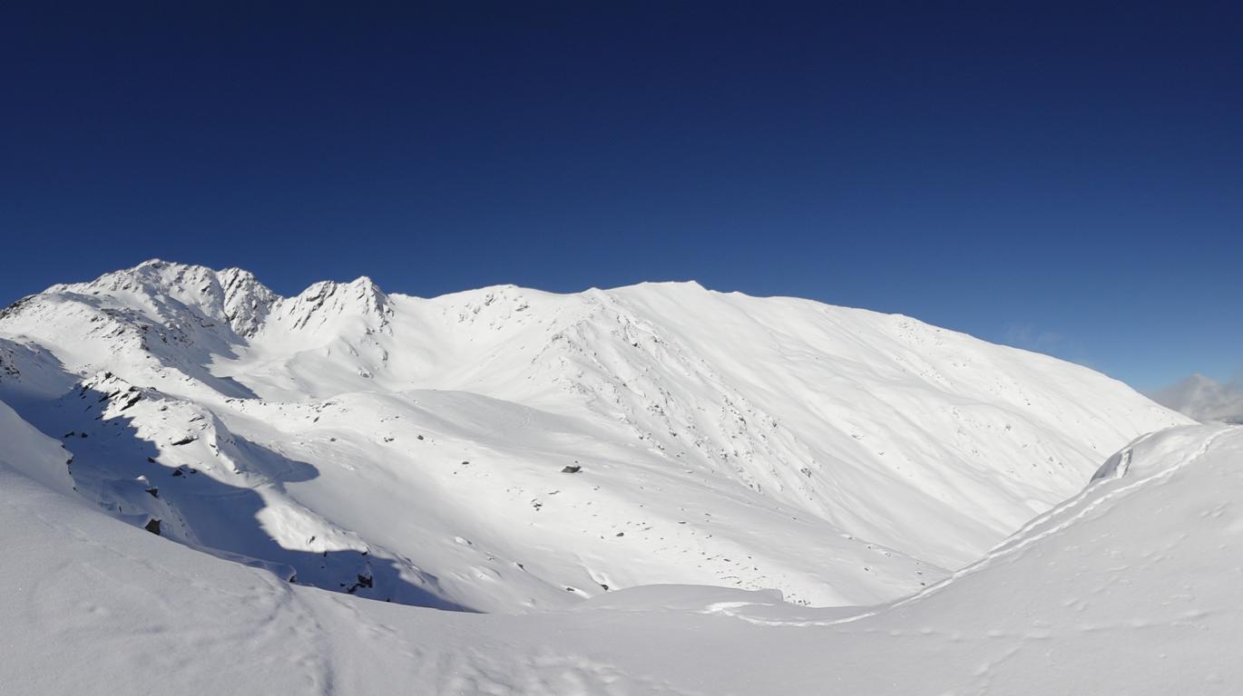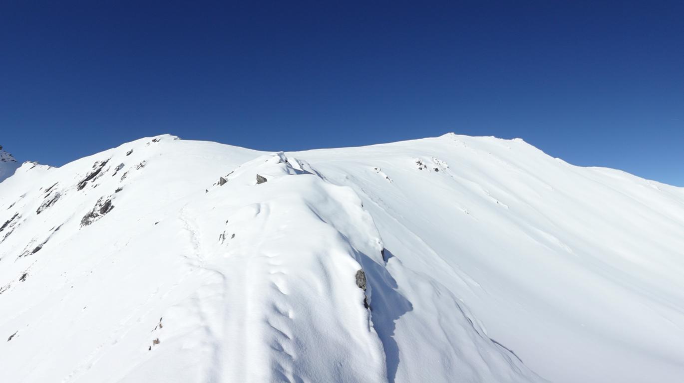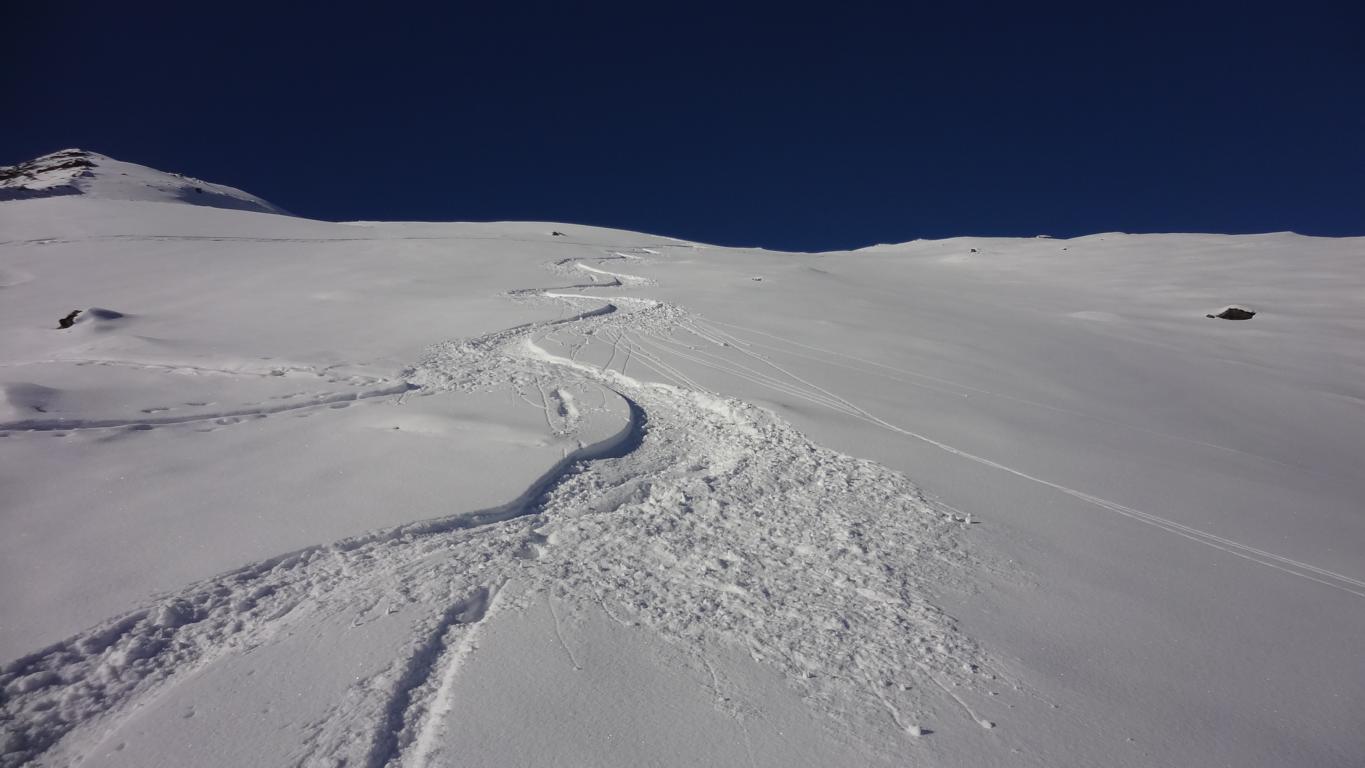 Vom Parkplatz zur Kogelhütte auf den Zirmkogel. An der Hütte vorbei Richtung Nordwesten ansteigend nach Schöneben und über eine schmale felsdurchsetzte Geländerampe ins Praxmarer Kuhgrübl. In Spitzkehren den steilen Südhang hinauf und weiter über den Grat zum Gipfel (kein Kreuz). Leider musste ich die Abfahrt über die sehr steile SO-Flanke vom Gipfel links liegen lassen, die Verhältnisse waren heute zu unsicher. Die Abfahrt, zuerst über die Aufstiegsspur zurück dann weiter über den Niederleger, bei 10 bis 15 cm Neuschnee war die Abfahrt gut bis sehr gut. Vorsicht auf Steine, immer noch zu wenig Schnee!