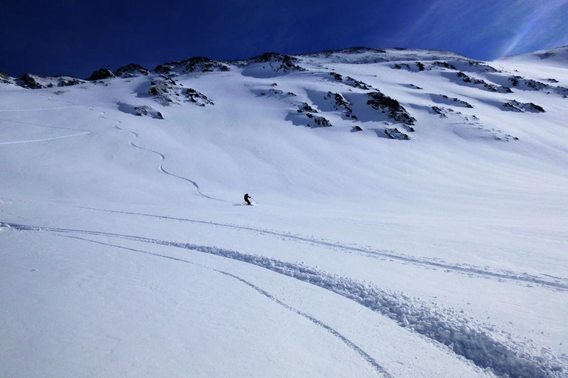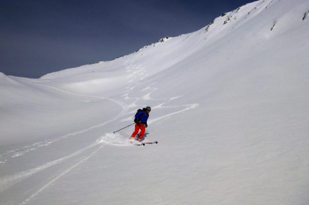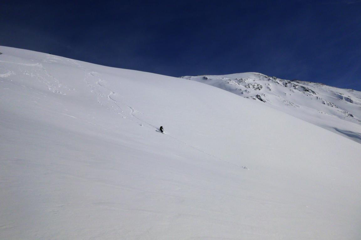 Gute Bedingungen, oben ca. 10 bis 15 cm Neuschnee auf tragendem Harschdeckel. Ab Wasserreservoir schon ein leichter nicht tragfähiger Harschdeckel.