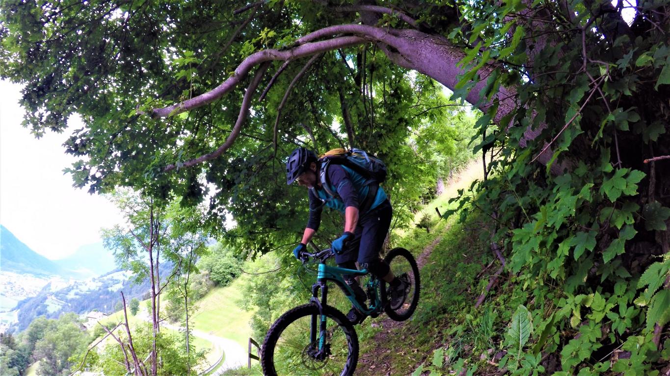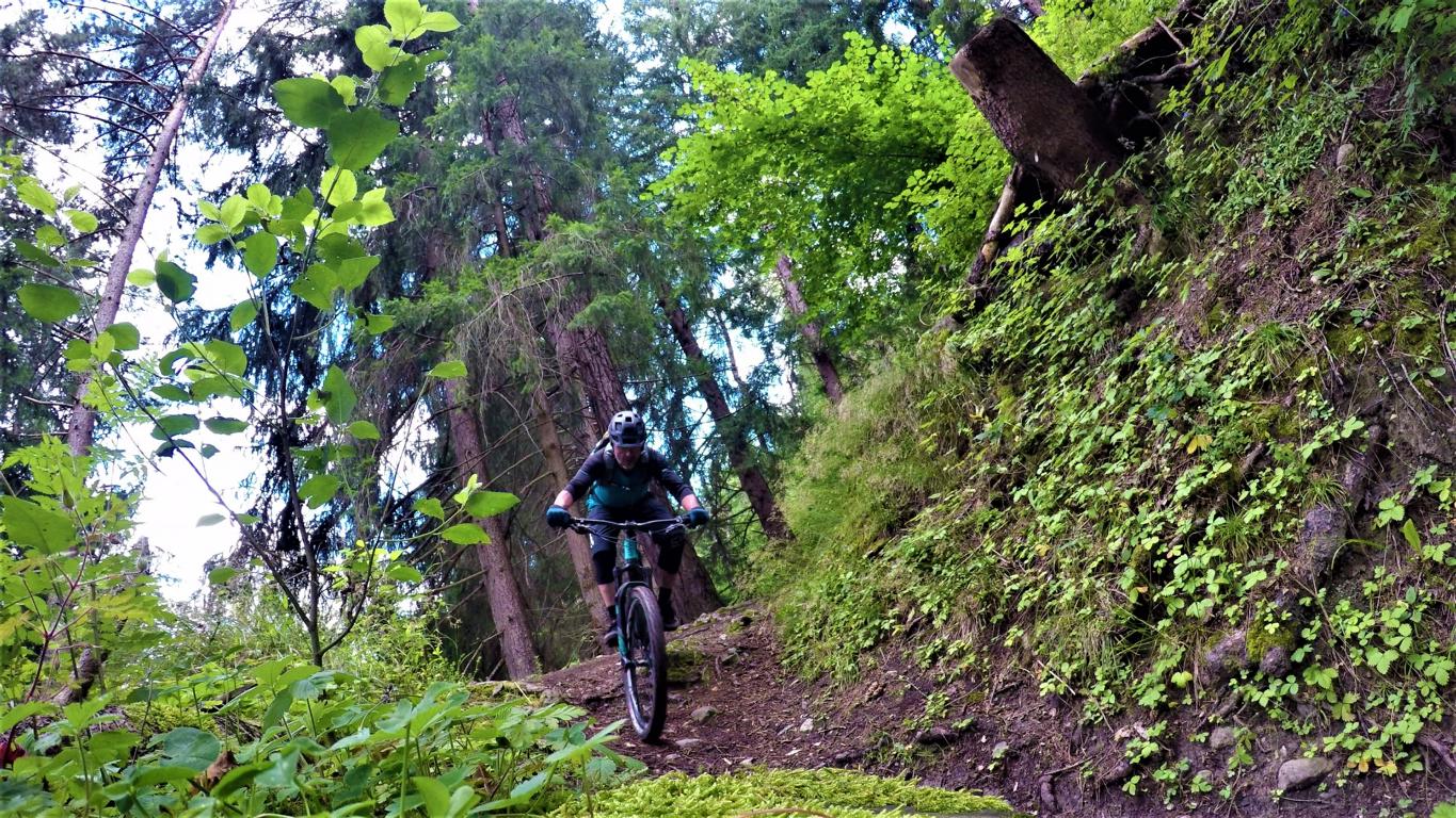 Von der Bergstation Hochötz ein kurzer netter S1-Trail hinunter zur Forststraße und über diese hinüber zum Roten Wandl. Von dort über die Piste und Forststraße nach Riedeben. Im letzten Abschnitt nach Ötz ergab sich doch noch ein brauchbarer Trail im Schwierigkeitsgrad S2+.