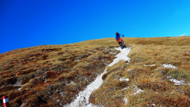 Der Trail vom Gipfel hinunter zum Sailenieder und weiter zur Pfarrachalm liegt im Schwierigkeitsgrad S1 bis S2. Direkt von der Alm führt der Trail weiter der sich bis etwa 150 Hm unterhalb der Pfarrachalm nach der Freifläche namens “Kotzen” am Hirtensteig über feinsten Singletrail weiter fortsetzt. Der Trail ist nicht sonderlich schwierig – vorausgesetzt man beherrscht das Spitzkehren fahren. Besonders im Mittelteil ist die Beherrschung des Hinterradversetzens von Vorteil, aber nicht zwingend. Der Trail von der Alm bis hinunter nach Plöven liegt im Schwierigkeitsgrad S2.