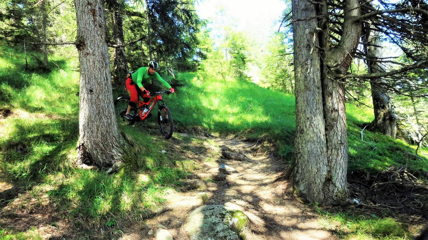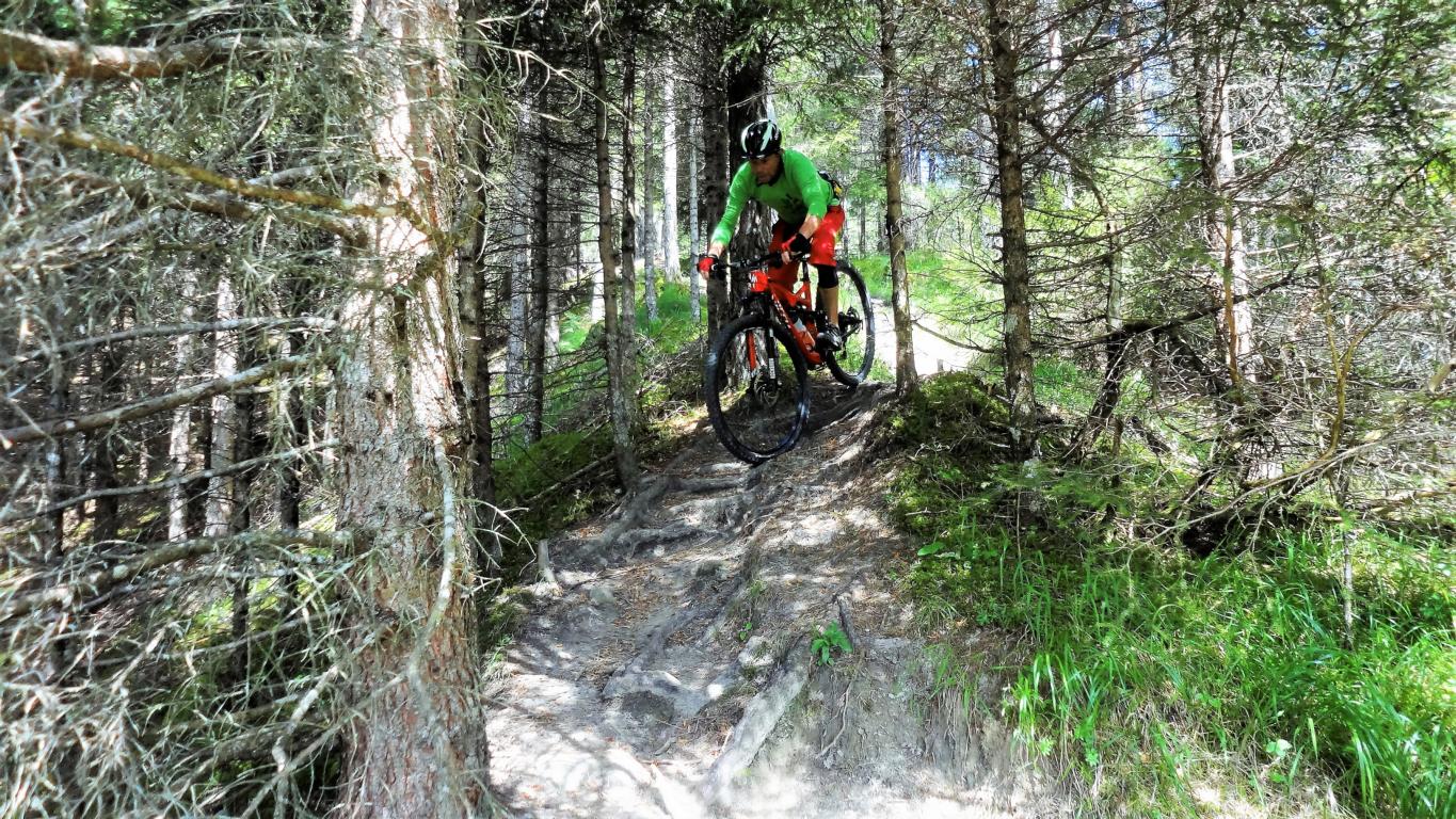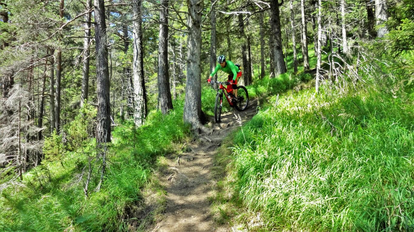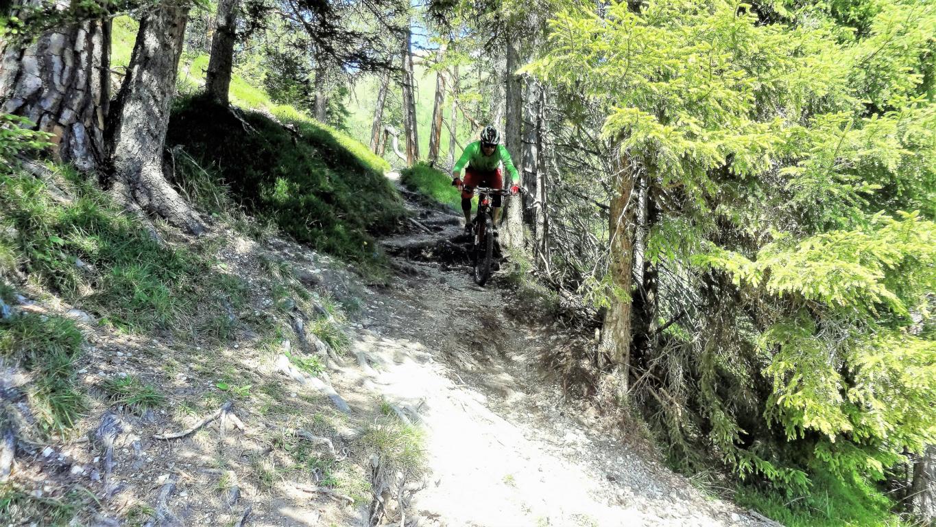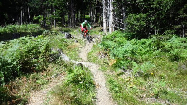 Der Trail vom Sailenieder hinunter zur Pfarrachalm liegt im Schwierigkeitsgrad S1-G2. Direkt von der Alm führt der Trail weiter der sich bis etwa 150 Hm unterhalb der Pfarrachalm nach der Freifläche namens “Kotzen” am Hirtensteig über feinsten Singletrail weiter fortsetzt. Der Trail ist nicht sonderlich schwierig – vorausgesetzt man beherrscht das Spitzkehren fahren. Besonders im Mittelteil ist die Beherrschung des Hinterradversetzens von Vorteil, aber nicht zwingend. Der Trail von der Alm bis hinunter nach Plöven liegt im Schwierigkeitsgrad S2.