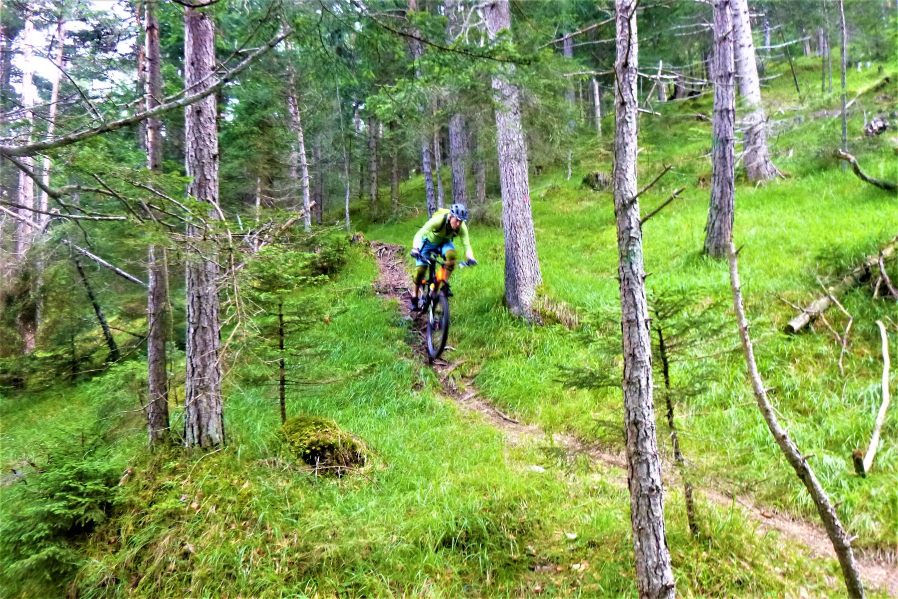 Der Trail führt durchgehend auf verfestigtem Waldboden mit mehreren Fels/Wurzelstufen und vielen Spitzkehren hinunter nach Reith. Der Schwierigkeitsgrad liegt Großteils bei S2 mit ein paar S3 Spitzkehren und einer S4/G3 Passage.