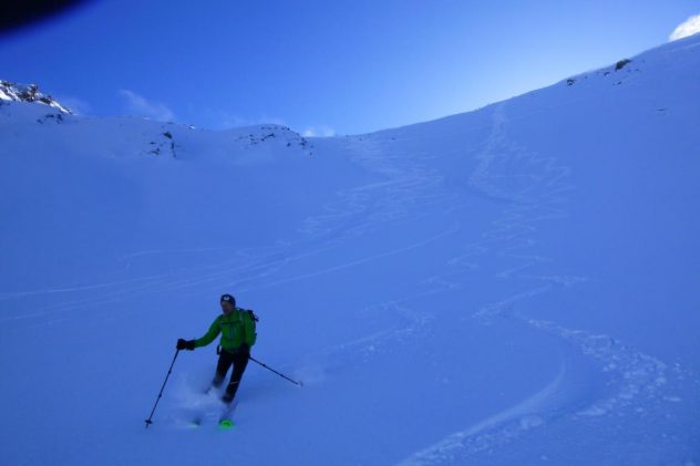 Sehr schöne nordseitige Tour mit Pulverschneegarantie. Abfahrt direkt vom Gipfel steil den Gipfelhang mit anfangs leichtem Steinkontakt dann bei Traum Pulver zum Blasigeralm-Hochleger. Vom Hochleger über perfektes Gelände bei besten Pulverbedingungen hinunter zur Rodelbahn.