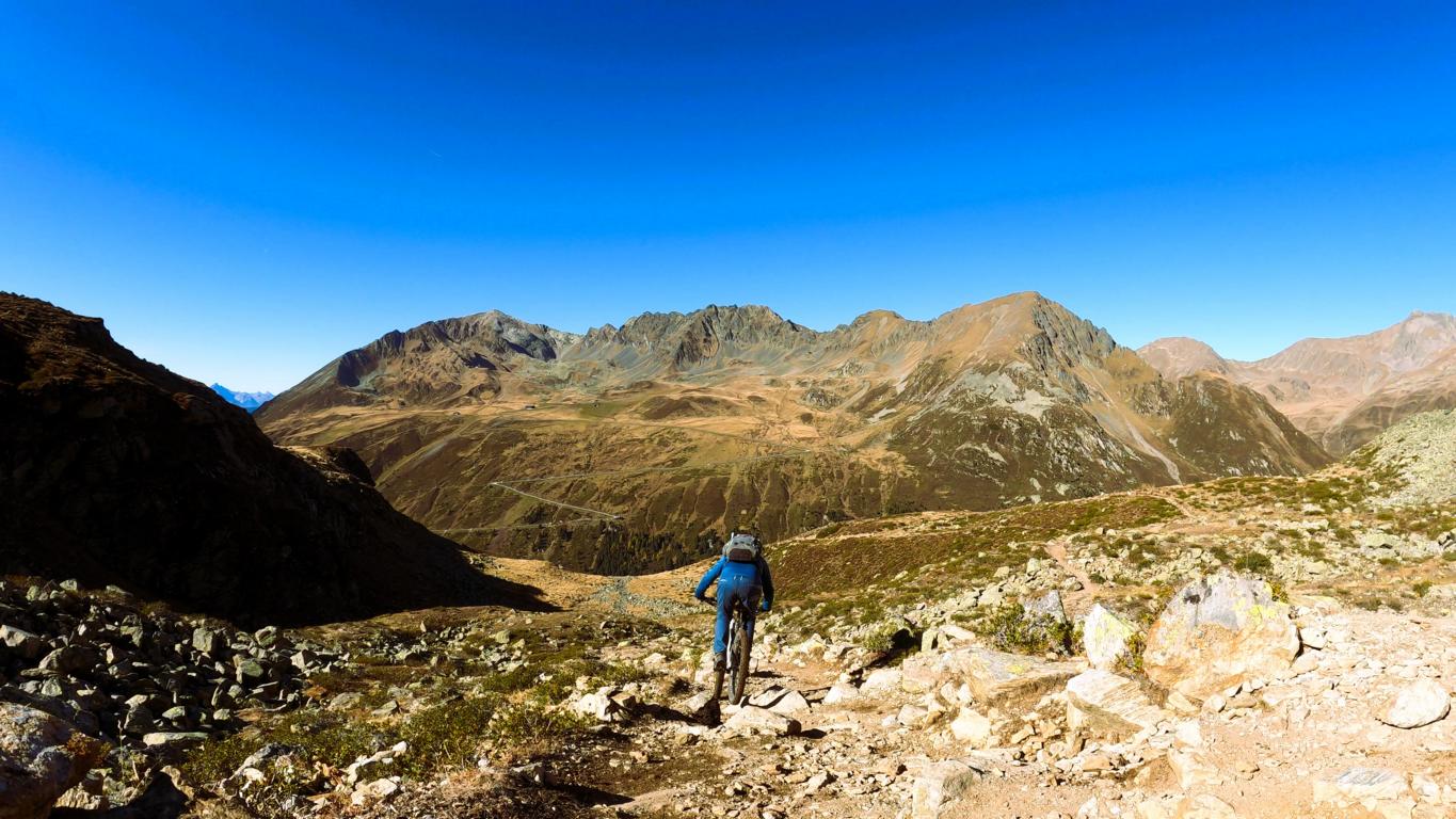 Der 3er Trail führt dich auf grobsteinigem, verblocktem Gelände mit S2-Schwierigkeit (einige S3-Stellen inklusive) wieder hinunter ins Kühtai. Eine perfekte Mischung aus Technik und Naturerlebnis.