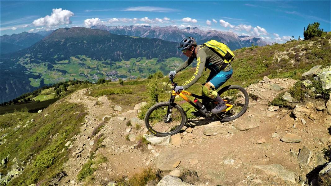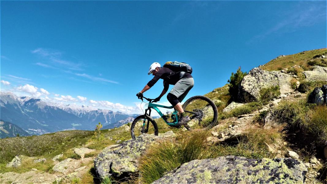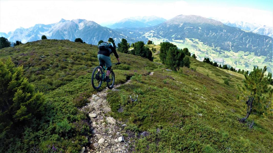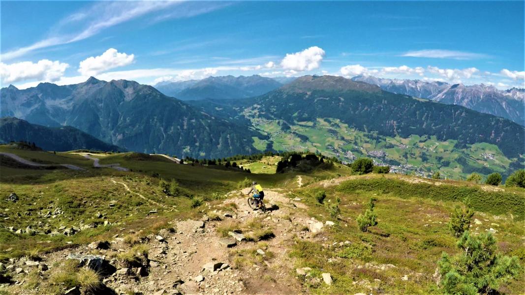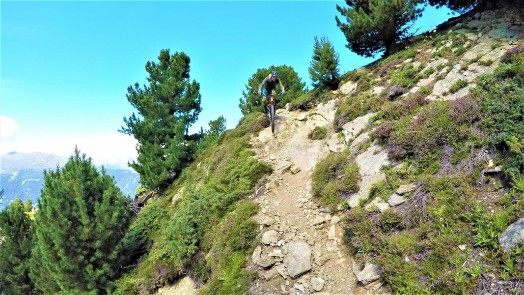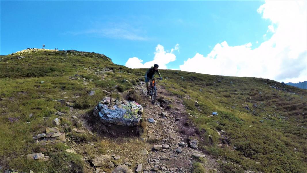 Abfahrt vom Gipfel durchgehend auf steinigen und verblockten Untergrund im Schwierigkeitsgrad S3 mit mehreren S4 und einer S5 Stelle hinunter zur Bergstation. Von dort über den Hochzeiger Family Trail hinunter nach Liss.