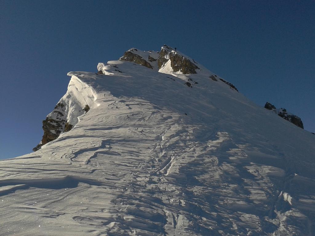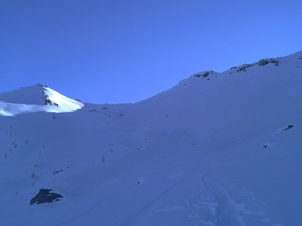 Oben bei der Abfahrt ist der Schnee etwas windgepresst aber noch gut zu fahren. Weiter unten über die schönen Schihänge mit noch viel Platz um seine eigenen Spuren in guten Pulverschnee zu ziehen.