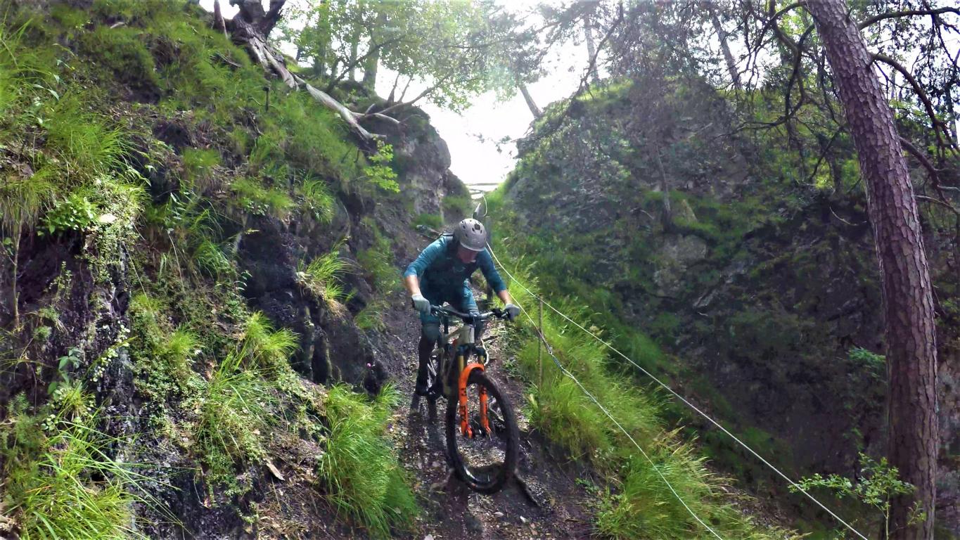 Die Abfahrt von der Kehre bis zur Schotterreise führt durchgehend auf verfestigtem Untergrund. 250 Hm oberhalb vom Magerbach beginnt die Schotterreise. Die verhältnismäßig flache Reise lassen hohe Geschwindigkeiten zu. Wer nicht Schotterreisen surfen will fährt auf dem Singletrail der in Serpentinen ins Tal führt weiter. Der gesamte Downhill ist mit S2/G2 zu bewerten.