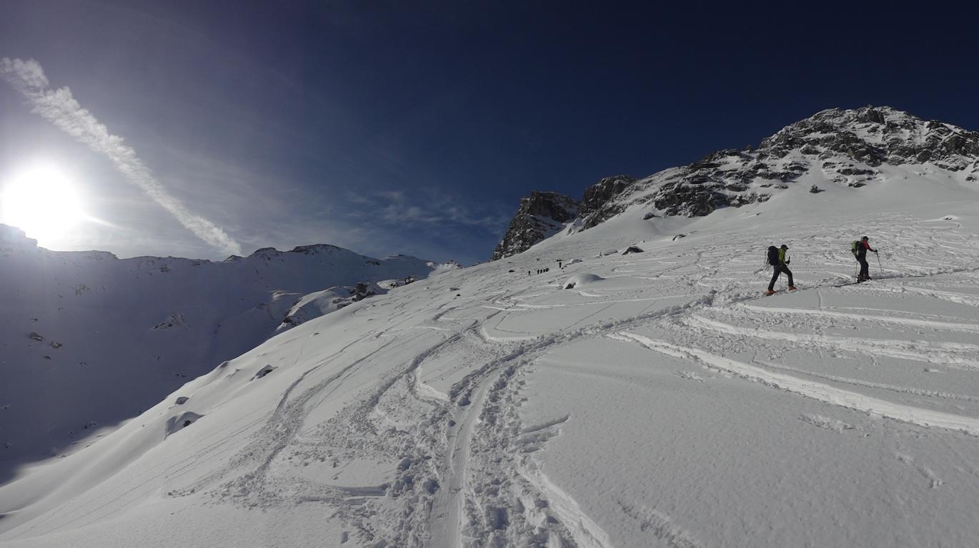 Im Wattental herrschen Momentan perfekte Bedingungen. Heute gingen Andi, Robert und ich auf den Geier. Es war zwar recht viel los und viele Abfahrtsspuren vom Samstag die allerdings von unseren liebsten Nachbarn stammen müßten. Denn die meisten verliefen im Bereich der Aufstiegsspur. Glück gehabt, somit blieben für uns genug unverspurte Hänge mit Traum Pulverschnee übrig.