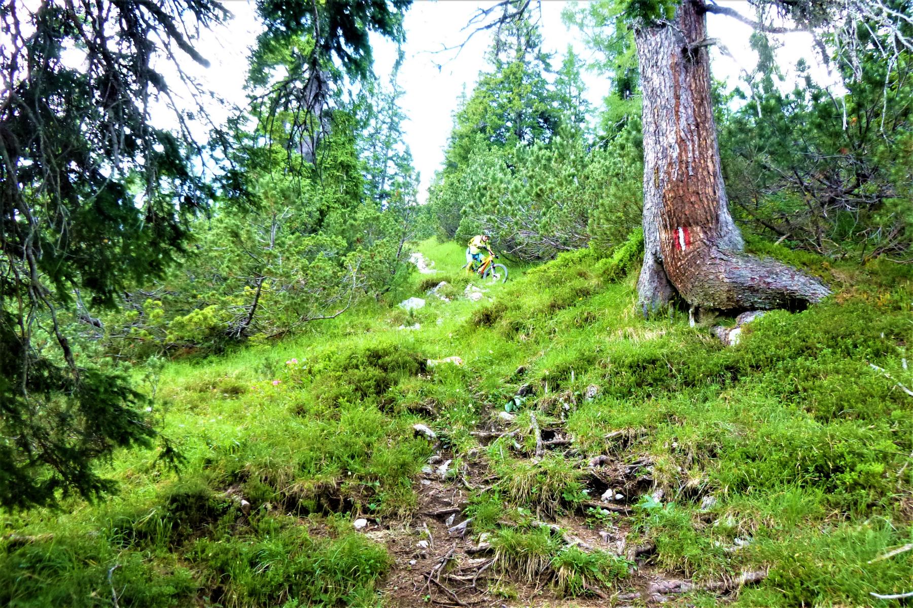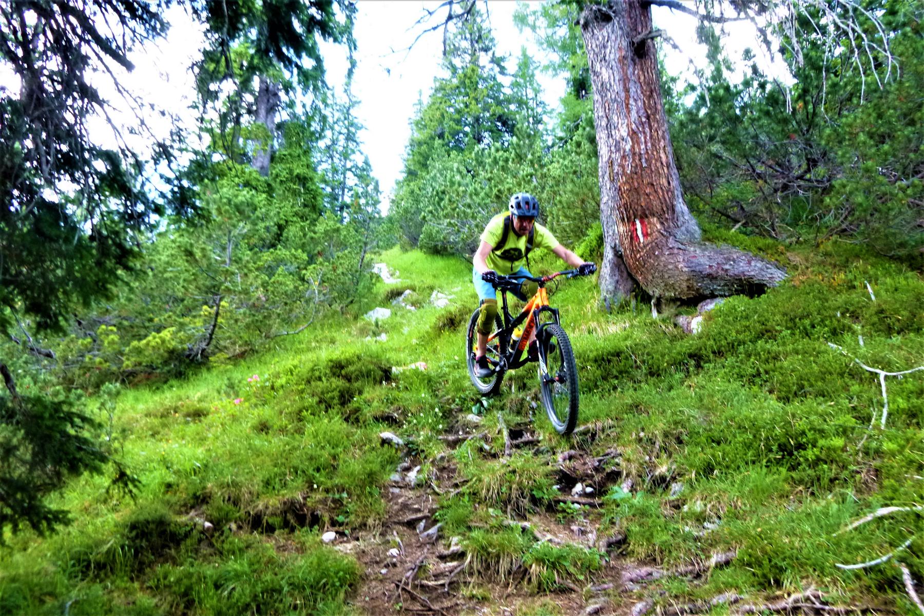 Hier liegt der Schwierigkeitsgrad bei S4/G3 – die Kombination aus Neigung, Untergrund und engen Kehren fordert volle Konzentration. Wer hier unterwegs ist, sollte seine Balance, Bremstechnik und Linienwahl perfekt beherrschen.