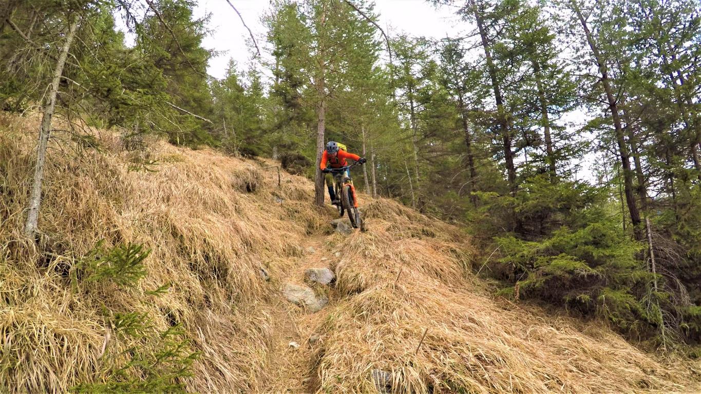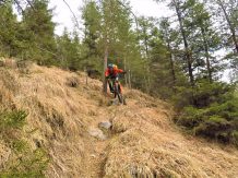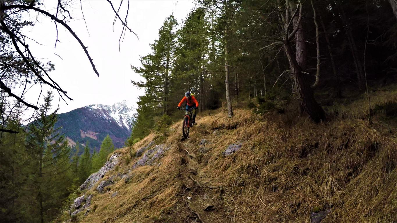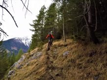 Der Traileinstieg ist etwas oberhalb vom Niederleger. Der Schwierigkeitsgrad des 235er-Trails bis zur Asphaltstraße liegt bis auf drei bis vier sehr schwierigen Einzelstellen die mit S4/G4 zu bewerten sind großteils bei S3/G3. Weiter über Maria Tax nach Stans weißt der Trail den Schwierigkeitsgrad S3/G2 auf.