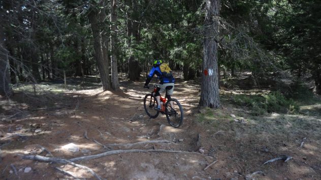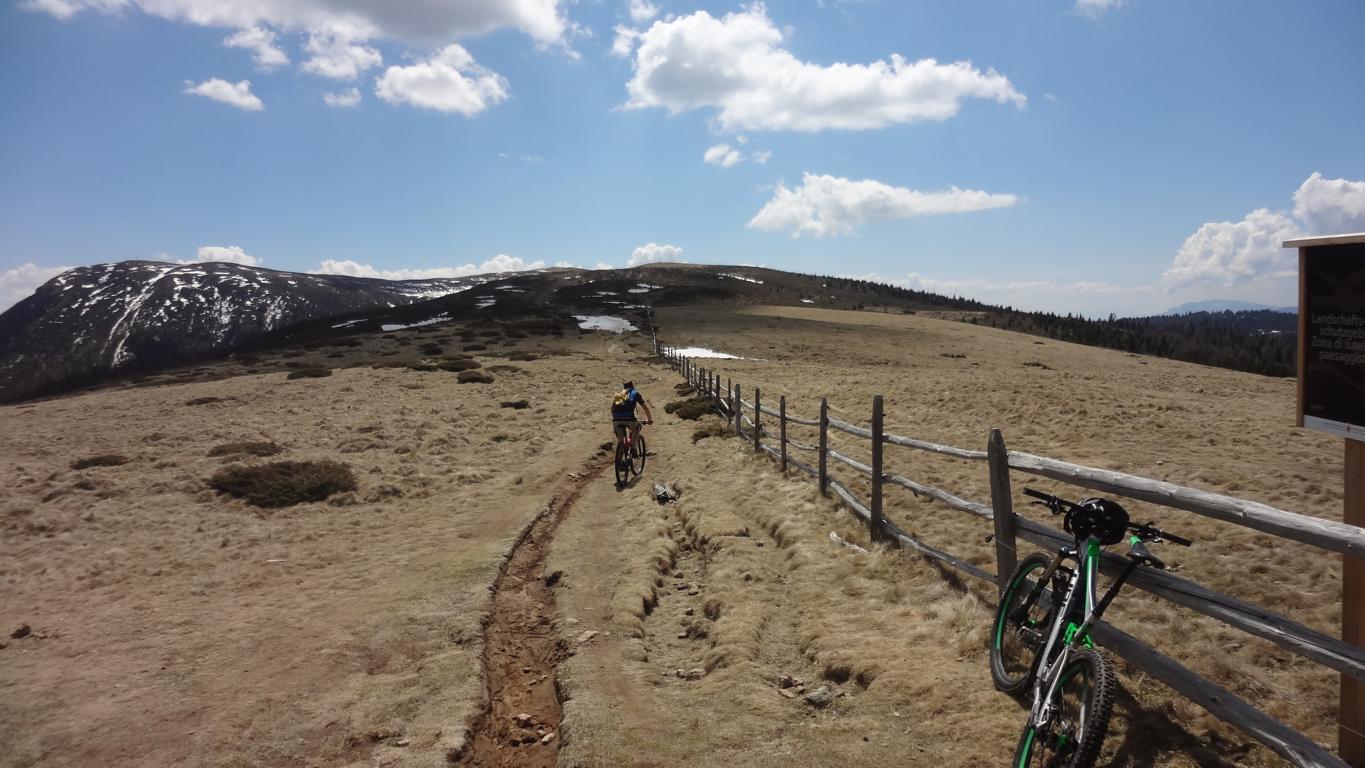 Von Hafling kurz auf der Straße abwärts, dann links in den Locherweg Nr. 15, der auf Asphalt aufwärts bis zu den Mittelberghöfen führt. Hier links auf den Forstweg Nr. 15 abbiegen und diesem aufwärts über Moschwaldalm und Maiseralm bis zum Kreuzjoch folgen. Dort biegt man rechts auf den Weg Nr. 4/E5 ab, der aufs Kreuzjoch, Auenerjoch und auf die Stoanernen Mandln führt. Über weite Almwiesen auf leichten Trails und Forstwegen (Nr. 23A) abwärts bis zur Möltner Kaser Alm. Von hier aus fährt man wieder rechts einen Trail (Nr. 4) leicht bergauf retour zum Auenerjoch. Ab hier weiter dem Weg Nr. 2 folgend zum Vöranerjoch und weiter leicht abwärts zur Vöraneralm. Kurz nach der Vöraneralm biegt man am Gatter links in die Wiesen (Weg Nr. 2) ab und folgt diesem zur Wurzeralm. Unterhalb der Wurzeralm wird der Weg Nr. 2 kurz zum S3-Trail. Ab hier folgt man dem Weg Nr. 2 bis zurück zum Ausgangspunkt.