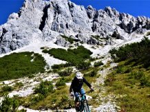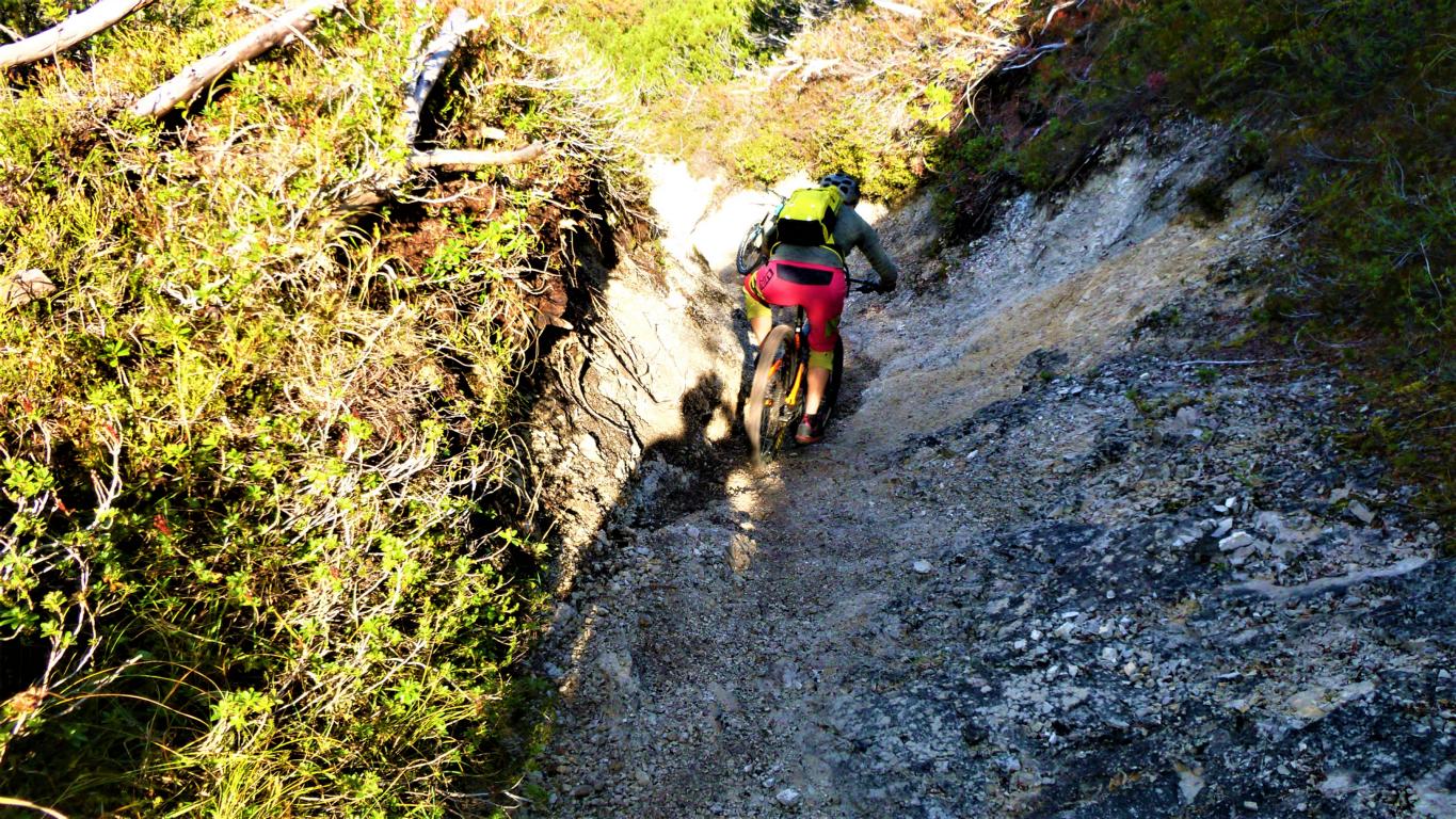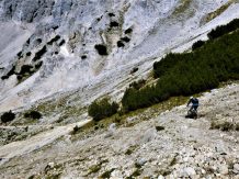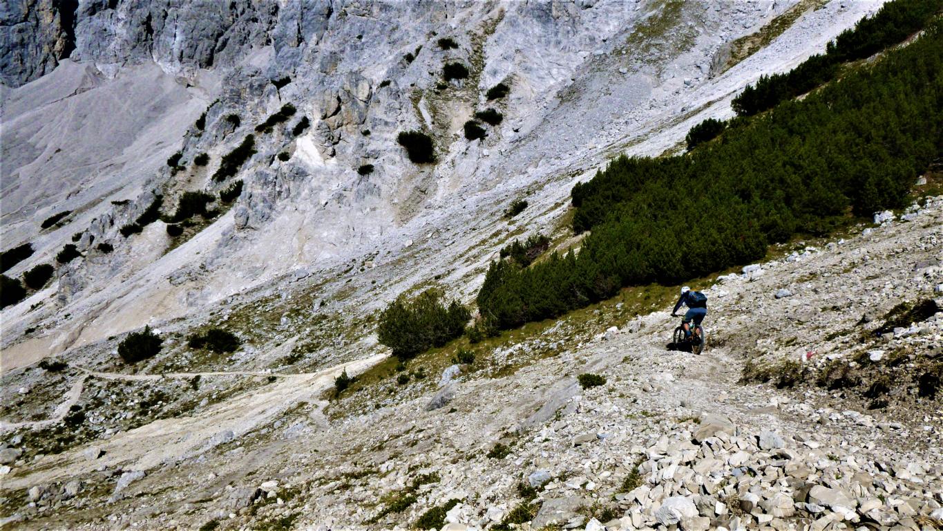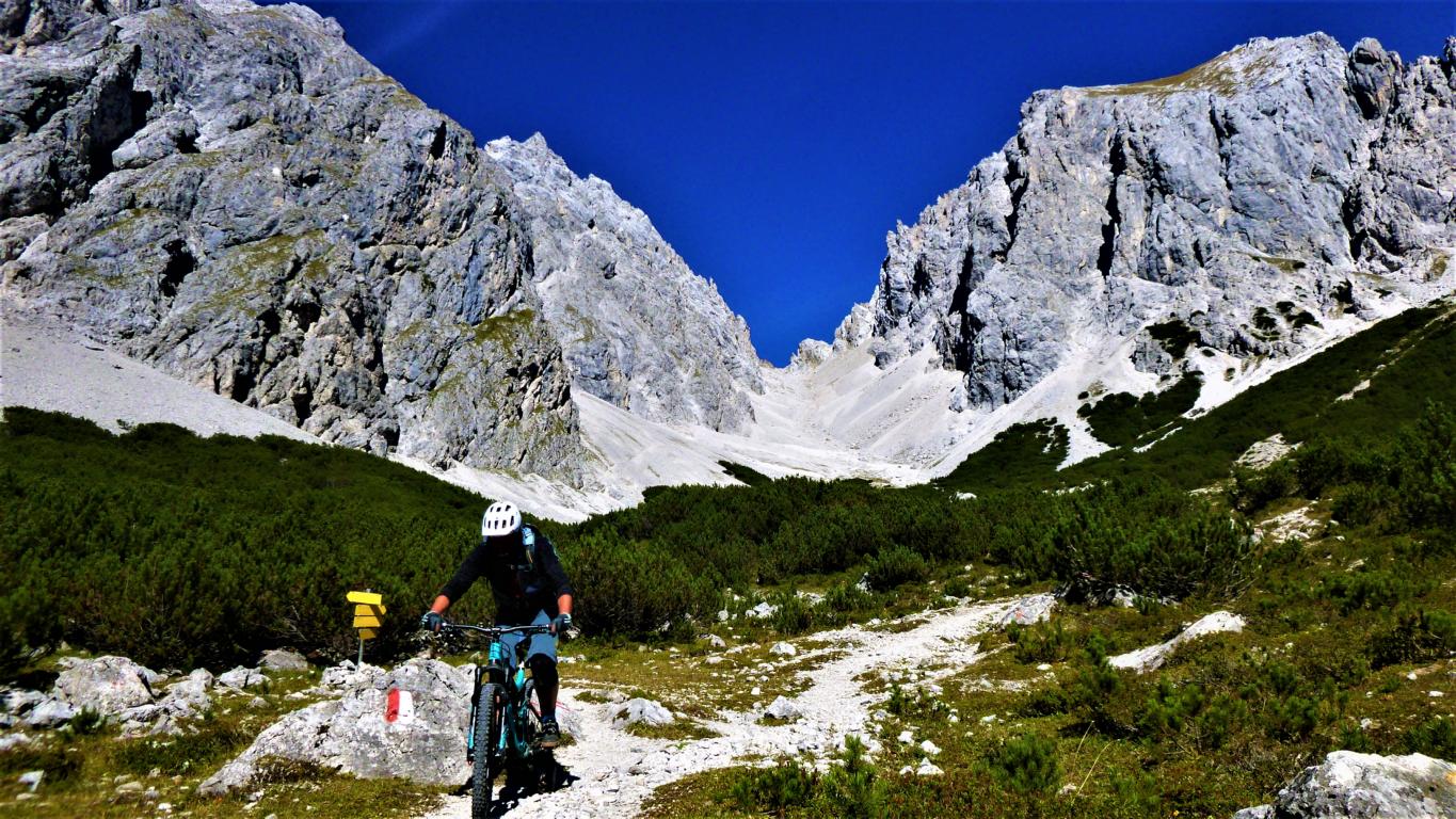 Der Trail vom Törl führt auf grobsteinigem Untergrund mit vielen engen Spitzkehren, ca. 45 Stk. hinunter zur Hölle. Die Kehren sind sehr eng auf losem Schotter, das Hinterrad versetzen ist zwingend und deshalb mit S3 zu bewerten. Weiter gehts das Tal entlang hinaus im Schwierigkeitsgrad S2 mit ein paar S3 Stellen über das Lehnberghaus hinunter zum Arzkasten.