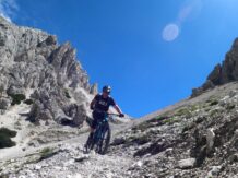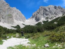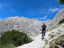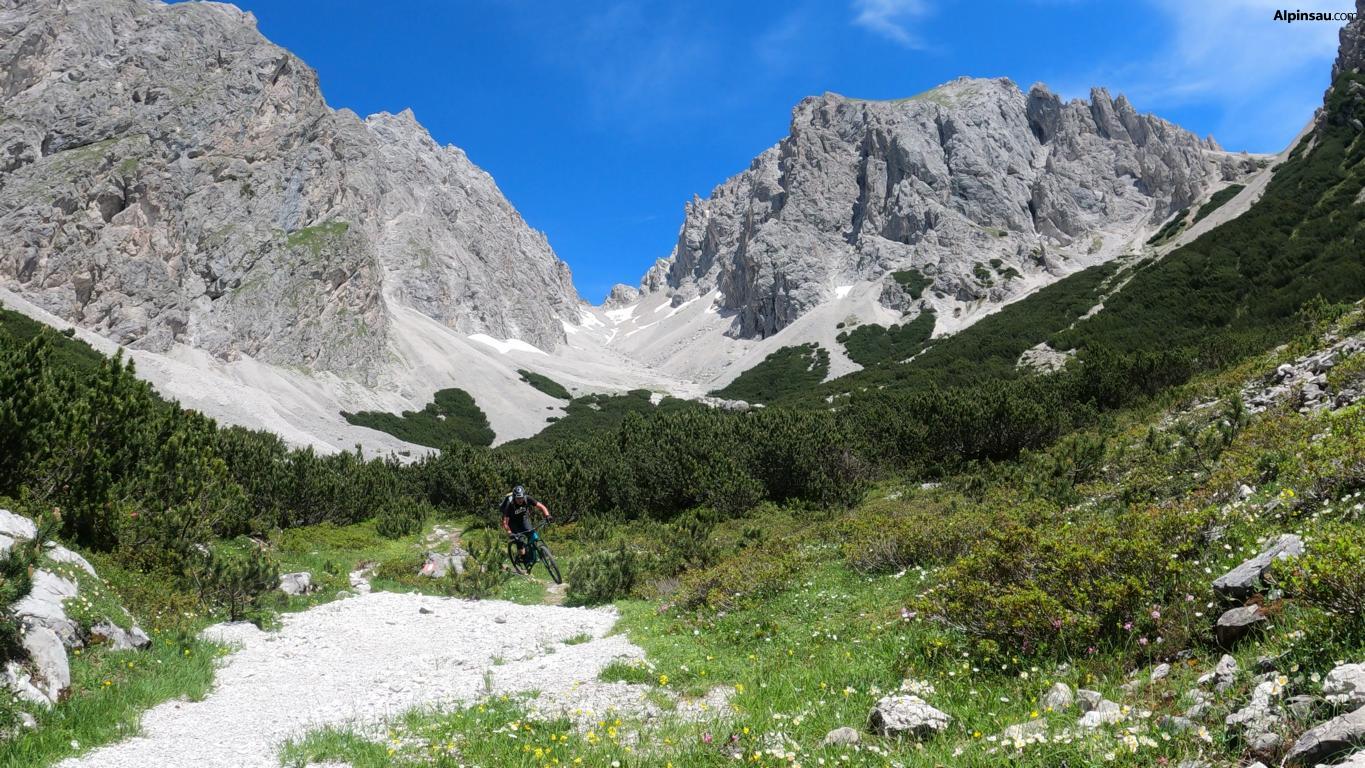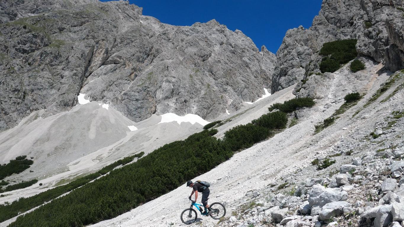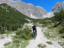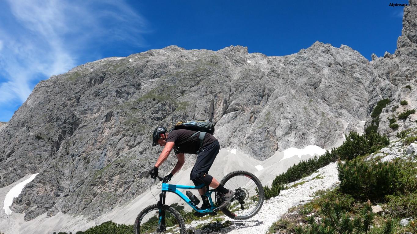Der Trail vom Törl führt auf grobsteinigem Untergrund mit vielen engen Spitzkehren, ca. 50 Stk. hinunter zur Hölle. Die Kehren sind sehr eng auf losem Schotter, das Hinterrad versetzen ist zwingend und deshalb mit S3 zu bewerten. Weiter gehts das Tal hinaus im Schwierigkeitsgrad S3 auf einen sehr ausgewaschenen und verblockten Trail über das Lehnberghaus hinunter zum Arzkasten.