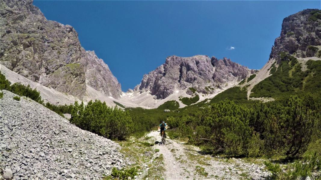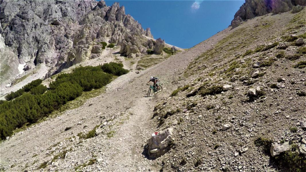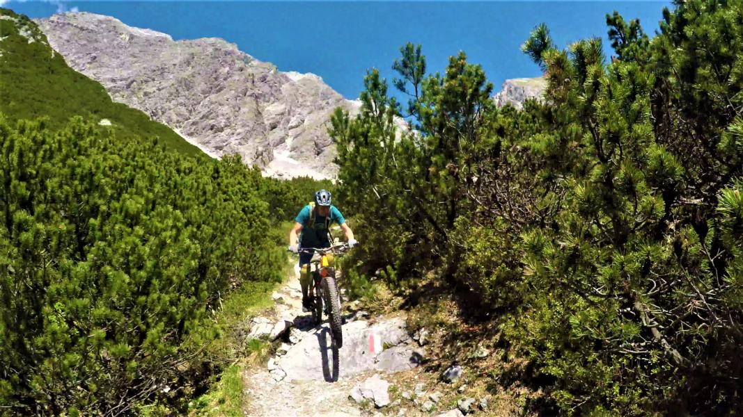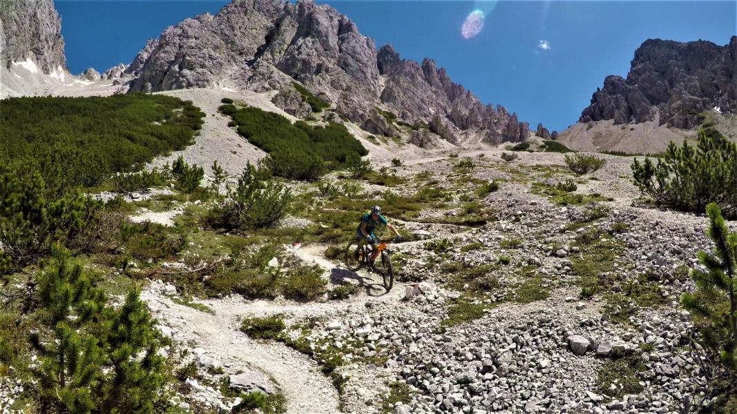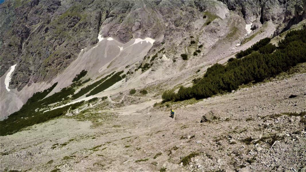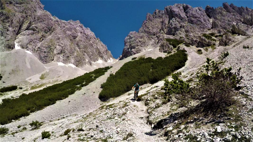 Der Trail vom Törl führt auf grobsteinigem Untergrund mit vielen engen Spitzkehren, ca. 45 Stk. hinunter zur Hölle. Die Kehren sind sehr eng auf losem Schotter, das Hinterrad versetzen ist zwingend und deshalb mit S3 zu bewerten. Weiter gehts das Tal entlang hinaus im Schwierigkeitsgrad S2 mit ein paar S3 Stellen über das Lehnberghaus hinunter zum Arzkasten.