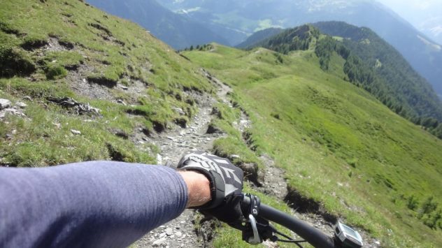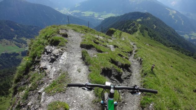 Von St. Jodok über die Unterleite hinauf zur Oberleite. Von dort weiter bis nach Knoten. Bei der Hütte links den ST37A-S2 abwechselnd schiebend und fahrend übers Hochgeneinerjoch zum Sumpfkopf. Der Singletrail vom Gipfel hinunter aufs Joch hat den Schwierigkeitsgrad S1/S2. Der ST39 vom Joch über den Hochgeneinerhof bis nach St. Jodok ist durchgehend mit S2/S3 zu bewerten.