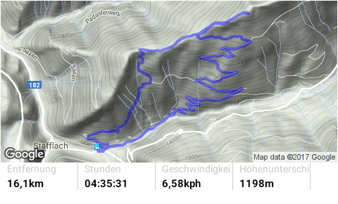 Von St. Jodok über die Unterleite hinauf zur Oberleite. Von dort weiter bis nach Knoten. Bei der Hütte links den ST37A abwechselnd schiebend und fahrend übers Hochgeneinerjoch und ca. 300Hm das Bike tragend zum Gipfel. Der Singletrail vom Gipfel hinunter aufs Joch hat den Schwierigkeitsgrad S1/S2. Der ST39 vom Joch über den Hochgeneinerhof bis nach St. Jodok ist durchgehend mit S2/S3 zu bewerten.
