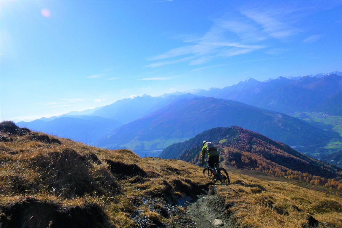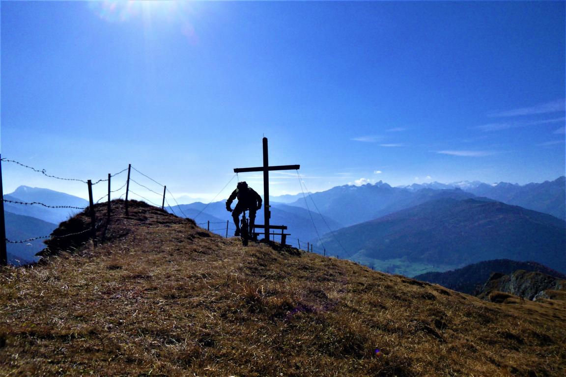 Von St. Jodok über die Unterleite hinauf zur Oberleite. Von dort weiter bis nach Knoten. Bei der Hütte links den ST37A abwechselnd schiebend und fahrend übers Hochgeneinerjoch und ca. 300Hm das Bike tragend zum Gipfel. Der Singletrail vom Gipfel hinunter aufs Joch hat den Schwierigkeitsgrad S1/S2. Der ST39 vom Joch über den Hochgeneinerhof bis nach St. Jodok ist durchgehend mit S2/S3 zu bewerten.