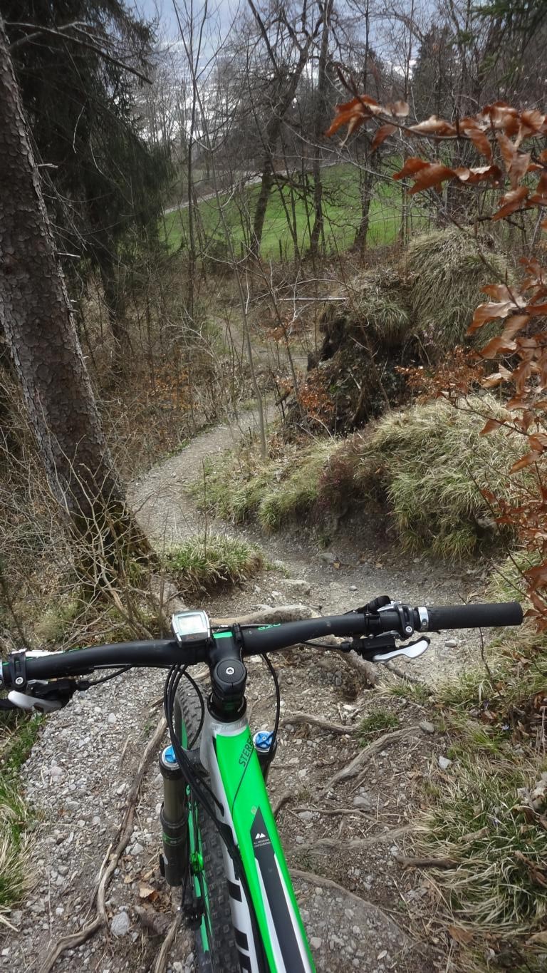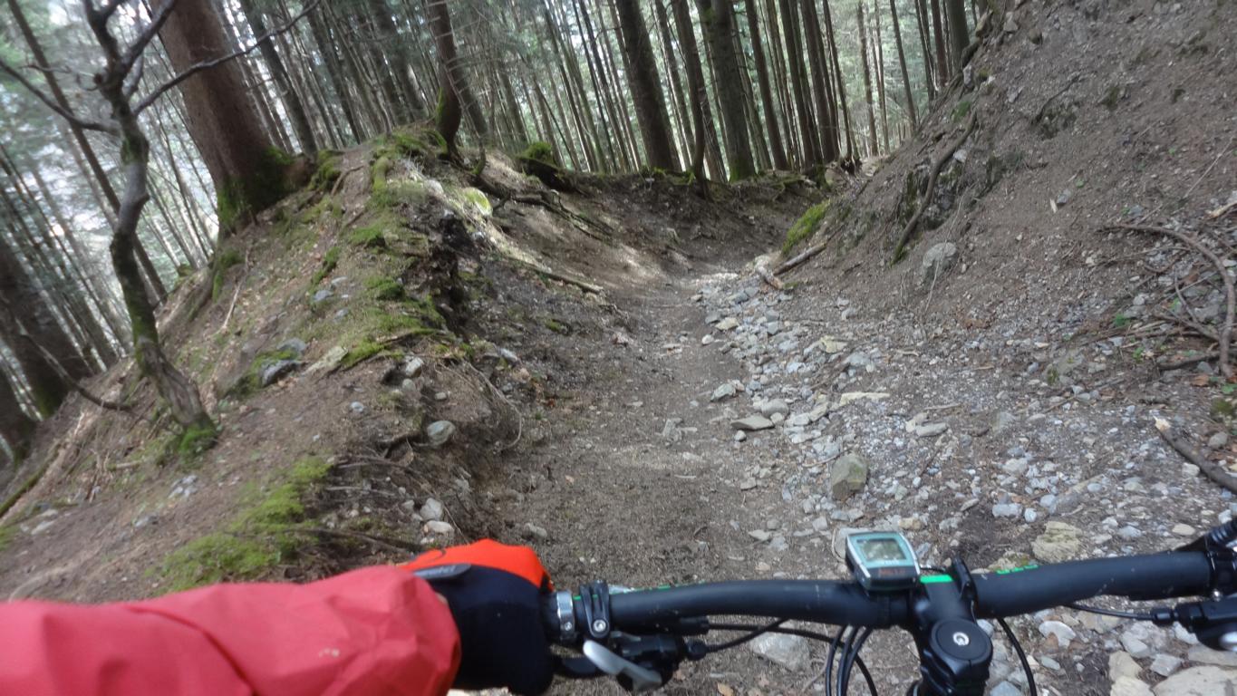 Der Singletrail bergab führt durchgehend auf verfestigtem Untergrund und ist mit dem Schwierigkeitsgrad S1/S2 bis zum Schloßhof zu bewertet, je nachdem welchen Trail man gerade erwischt.