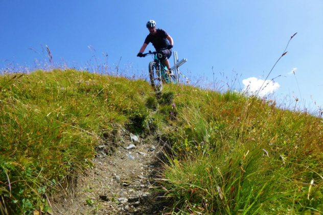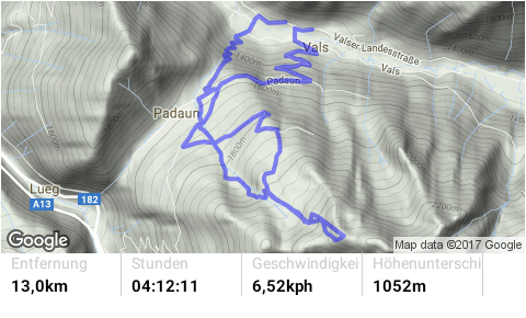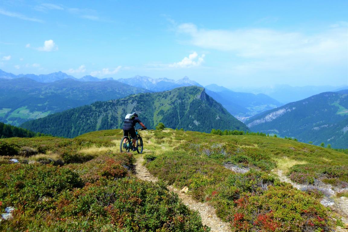 Die ersten 150 Tm vom Gipfel (sehr ausgesetzt) liegen im Schwierigkeitsgrad S3-G3. Über Klausen weiter abwechselnd auf flowigem S1-S2 Trail mit ein paar S3 Stellen hinunter zum Gasthof Steckholzer. Von dort über den Padauner-Trail runter nach Vals. Dieser Trail weist abwechselnd den Schwierigkeitsgrad S3 und S2 auf.