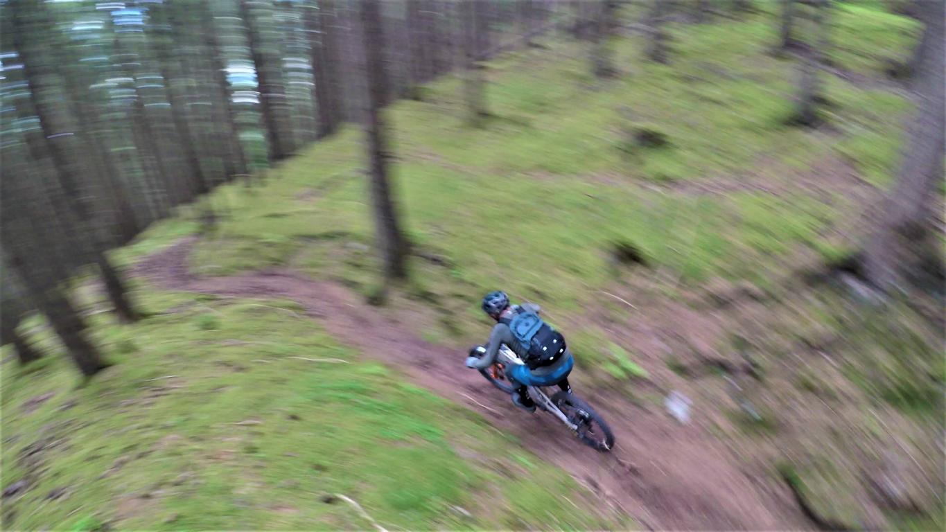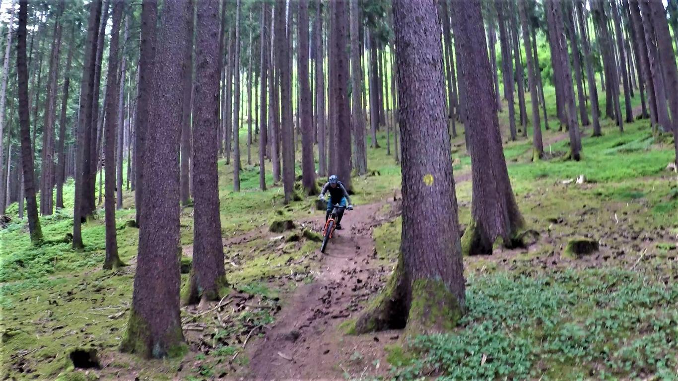 Der super flowige Trail führt durchgehend auf verfestigtem Waldboden im Schwierigkeitsgrad S1 mit ein paar S2 Stellen der über den Volderberg hinunter nach Volders führt.