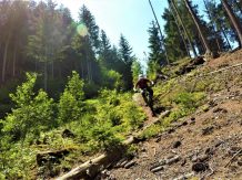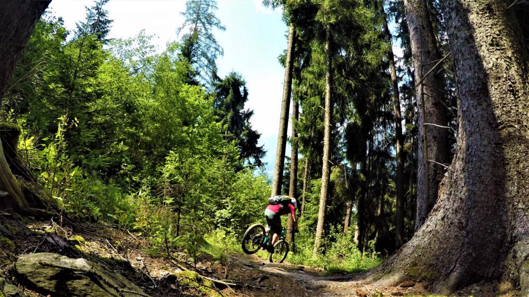 Der super flowige Trail führt durchgehend auf verfestigtem Waldboden im Schwierigkeitsgrad S1 mit ein paar S2 Stellen der über den Volderberg hinunter nach Volders führt.