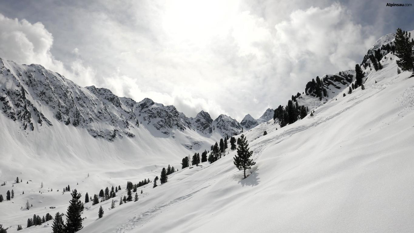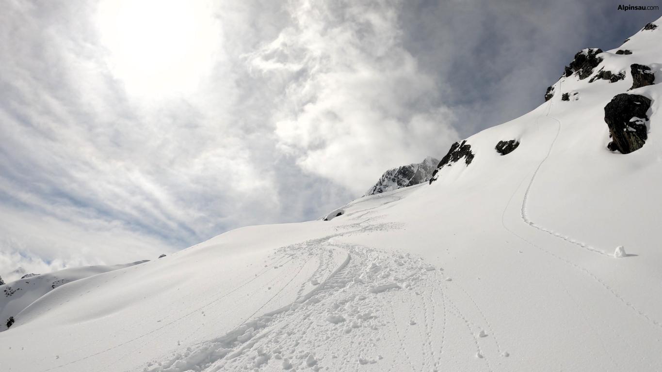 Es fielen 10 bis 15 cm Neuschnee. Während in den Nordhängen guter Pulverschnee liegt, findet man in den Osthängen bereits schwereren Pappschnee.