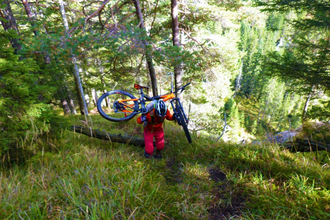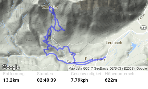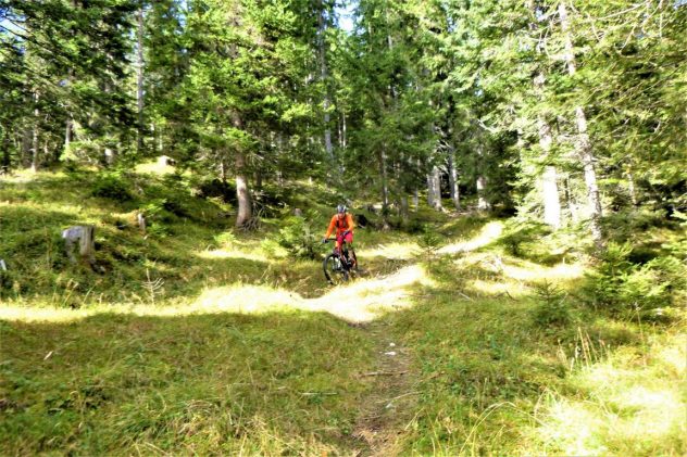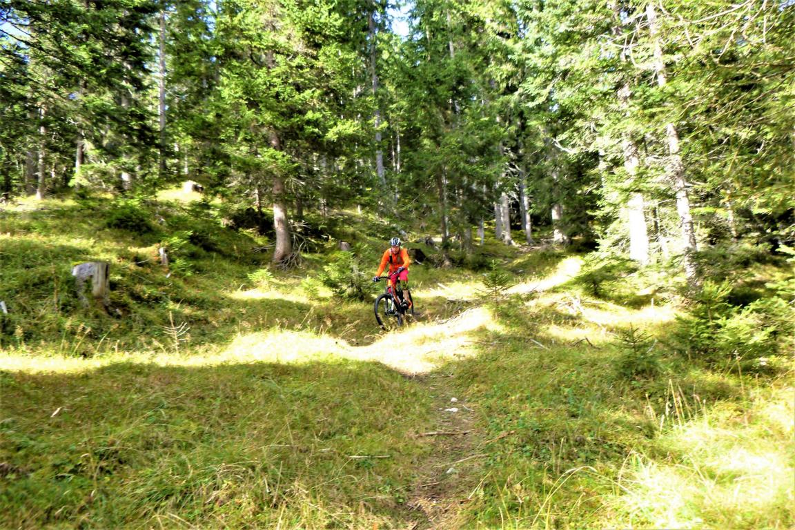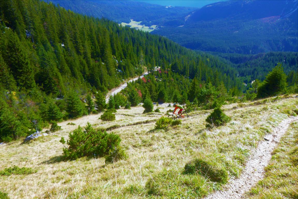 Der Trail führt von der Alm auf losem schottrigen Untergrund und über Spitzkehren im Schwierigkeitsgrad S2/G1 zur Forststraße. Von dort über einen S0-Trail hinunter zum Klammbach. Mit einer kurzen Tragepassage führt der Trail auf wurzeligen Waldboden abwechselnd im Schwierigkeitsgrad S1/S0 weiter zur Leutascher Ache.