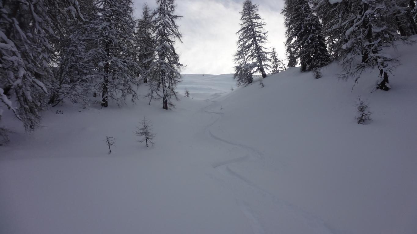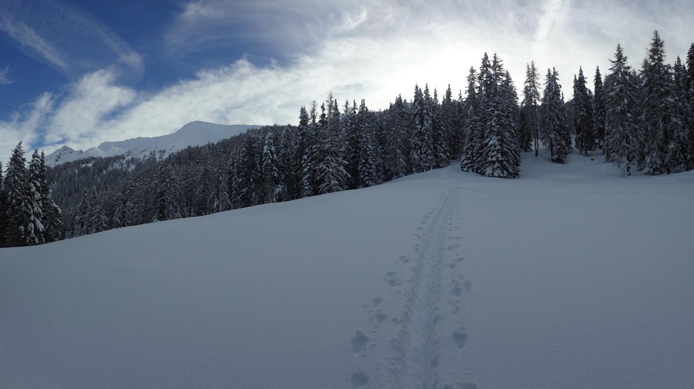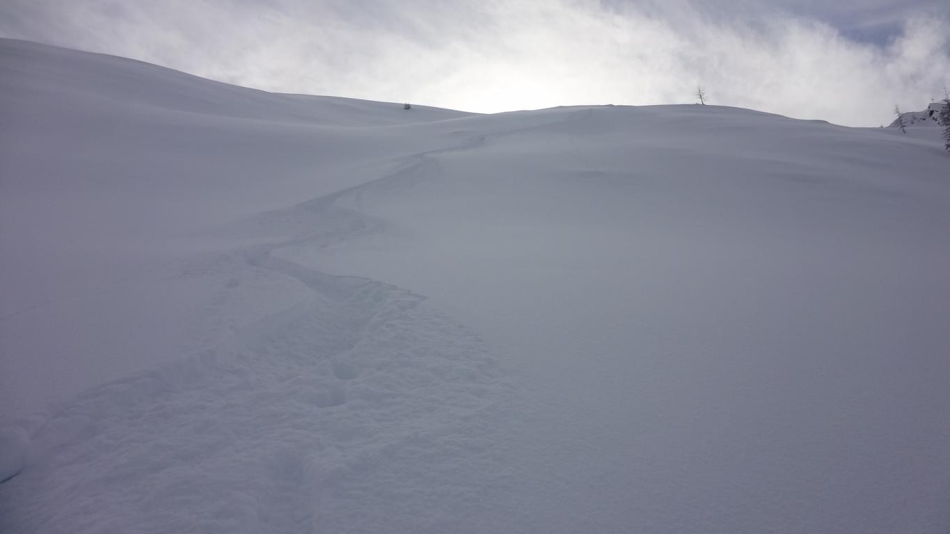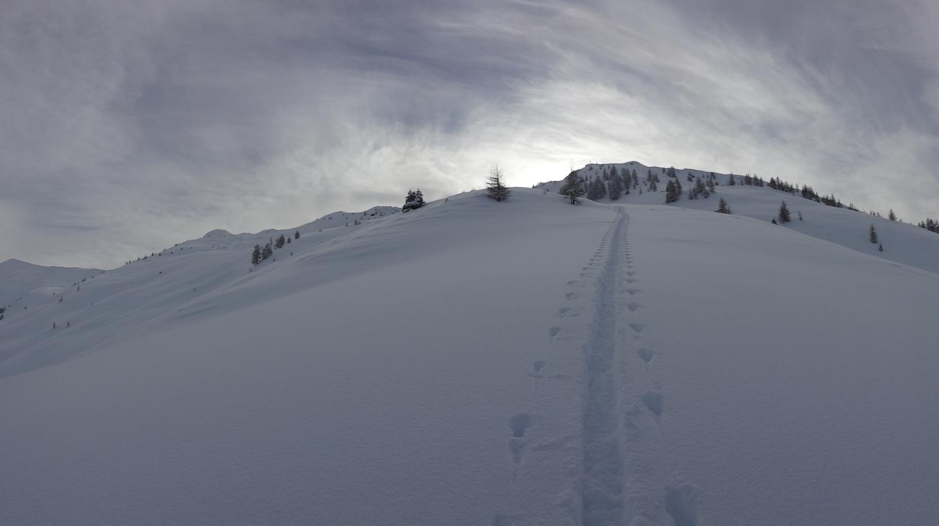Eigentlich wollte ich auf die Gammerspitze aber die momentanen Verhältnisse ließen es nicht zu. Beim Aufstieg gab es etliche Setzungsgeräusche und vom Gipfel aus konnte man, Richtung Gammerspitze, einige Selbstauslöser beobachten. Dafür war die Abfahrtsvariante über die Nordseitige weite Rinne hinunter ein einziger Pulvertraum.