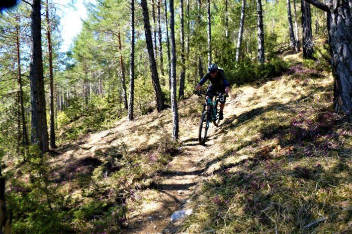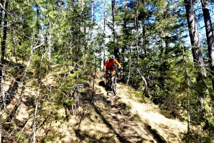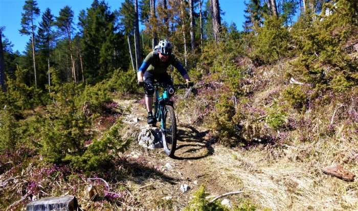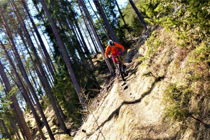 Vom Straßbergweg über den flowigen S1-Trail auf festem Untergrund mit einigen S2-Spitzkehren, kleineren Wurzel- und Felsstufen hinunter zum Griesbach. Länge: 12,50 KmZeit: 2:20 St.Aufstiegsmeter: 600 HmSchwierigkeitsgrad: S1-G1, Stellen S2-G1